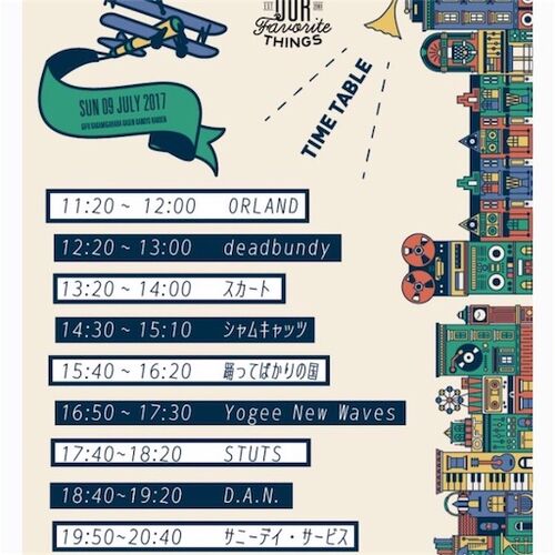 岐阜県各務原市で開催されている野外フェスOur favorite things。わりと近所だし、毎年魅力的なメンツでうらやましいなと思っておりましたが、今年初めて参加できました。 なんせ出演アーティストがサニーデイ、スカート、シャムキャッツにヨギー、D.A.NにST…
