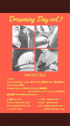 久々の更新です。 細田瑞樹さんという若きミュージシャンが主催、自ら出演しているイベント「Dreaming Day vol.7」に行ってきました。 この日でちょうどイベント開始から一周年とのことでしたが、1年で7回ということは、2ヶ月に一回以上のペースで開催って…